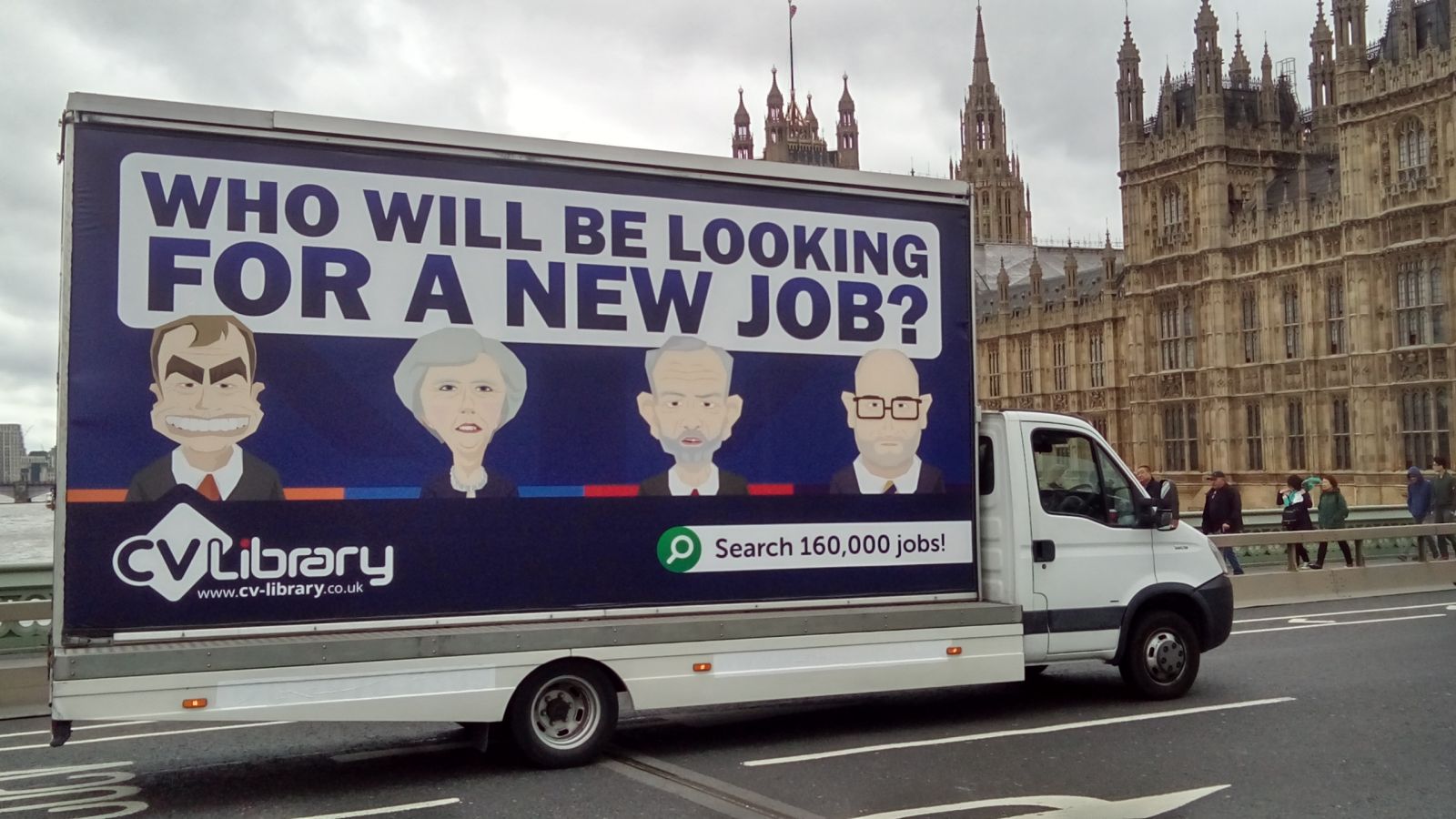 Away from canine activities, online job site CV-Library is driving this election-themed van around well-known sites in